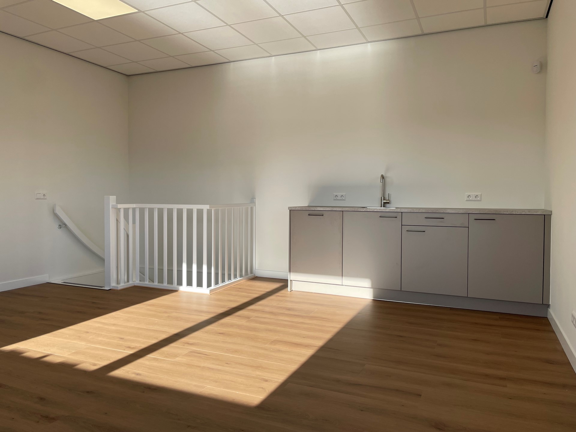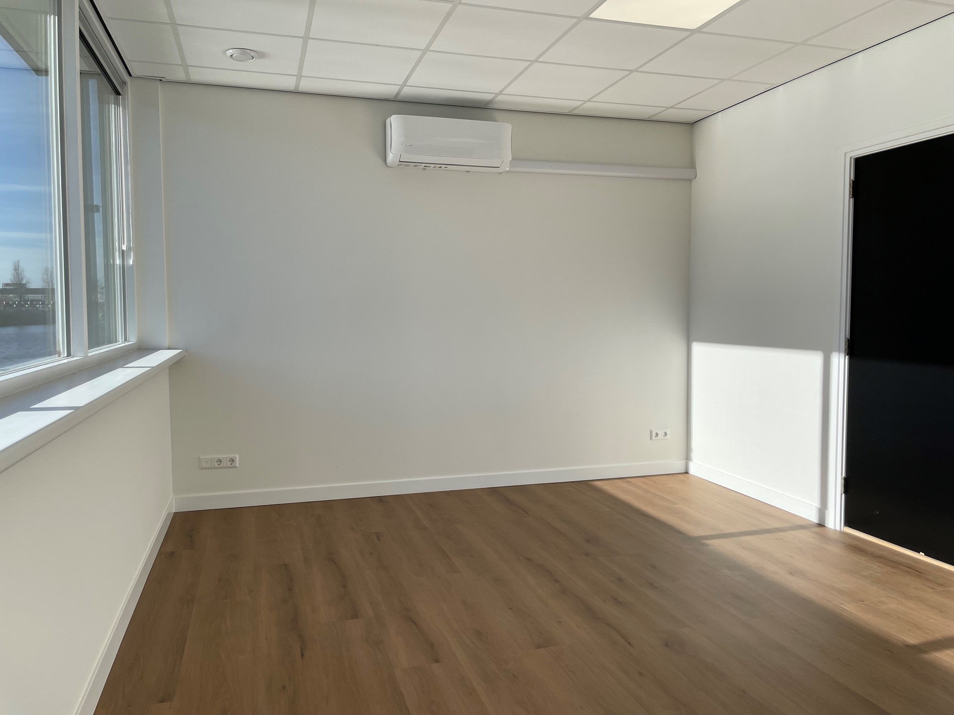 Voorzieningen: systeemplafond, verlichting, toilet, airco, vloeren.